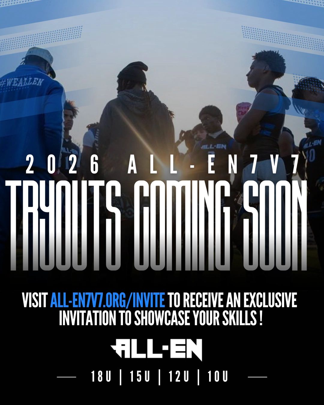 While we are looking forward to the upcoming 7v7 season, we want athletes to continue to focus on their commitment and development with their school’s team. Click the link below to receive an exclusive invite to tryouts!